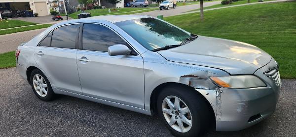 Selling 2007 Toyota Camry, good condition and has a clean title. Mostly driven within the college campuses for last 9 years. Passenger side fender has a dent. Cracks on windshield. Both are easily fixable. We bought a new car and this one is just sitting on the driveway. All windows are tinted. Recently replaced front breaks and rotors. Head gasket has also been replaced too.